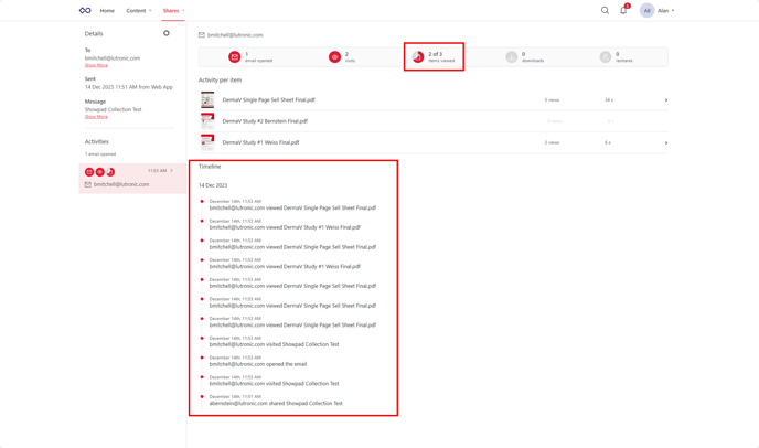 Here you can see the activity history of your specific collection. You can also see which items in the collection have been viewed.